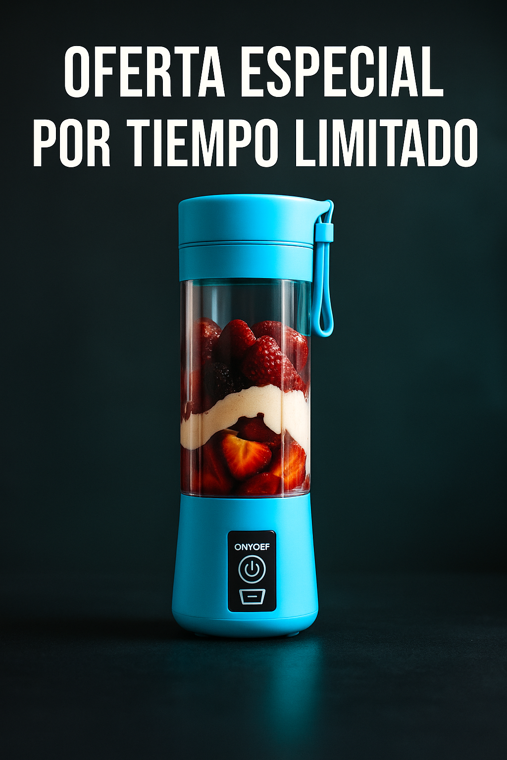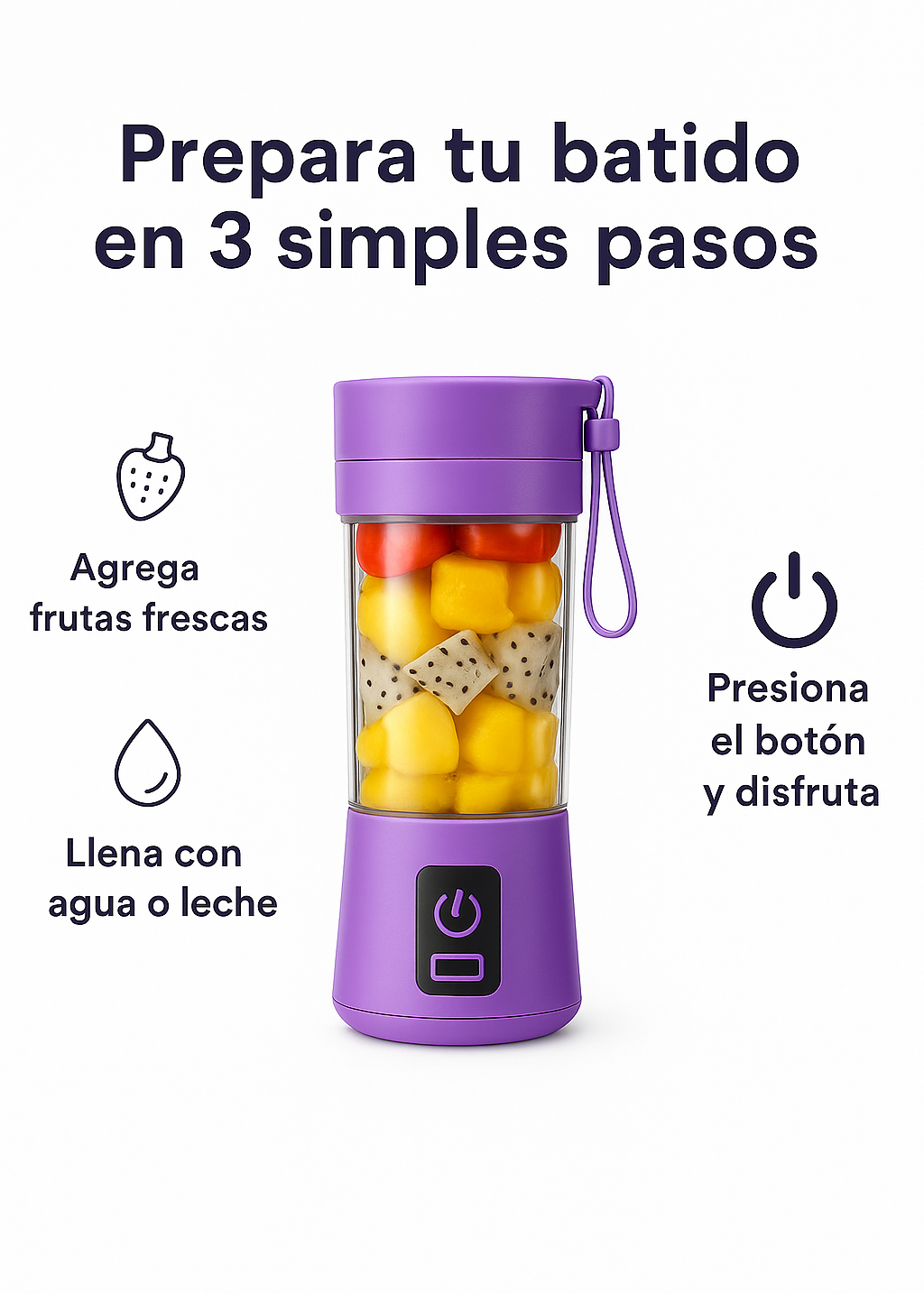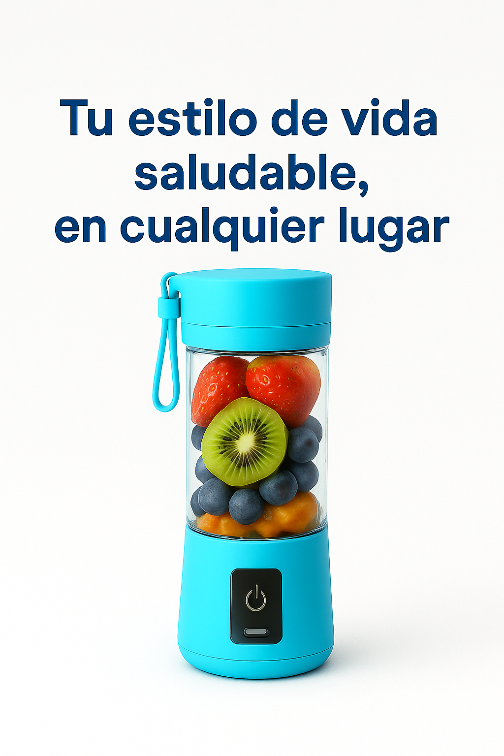 Lleva tu Mini Licuadora Portátil y disfruta de smoothies frescos en cualquier lugar.